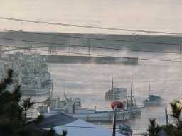 朝日に照らされて、太古の記憶のような湯気が立ち昇る。